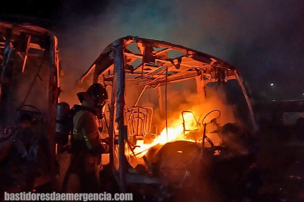 Incêndio destrói dois ônibus em garagem próxima à Estação Pirajá; ação rápida evita propagação